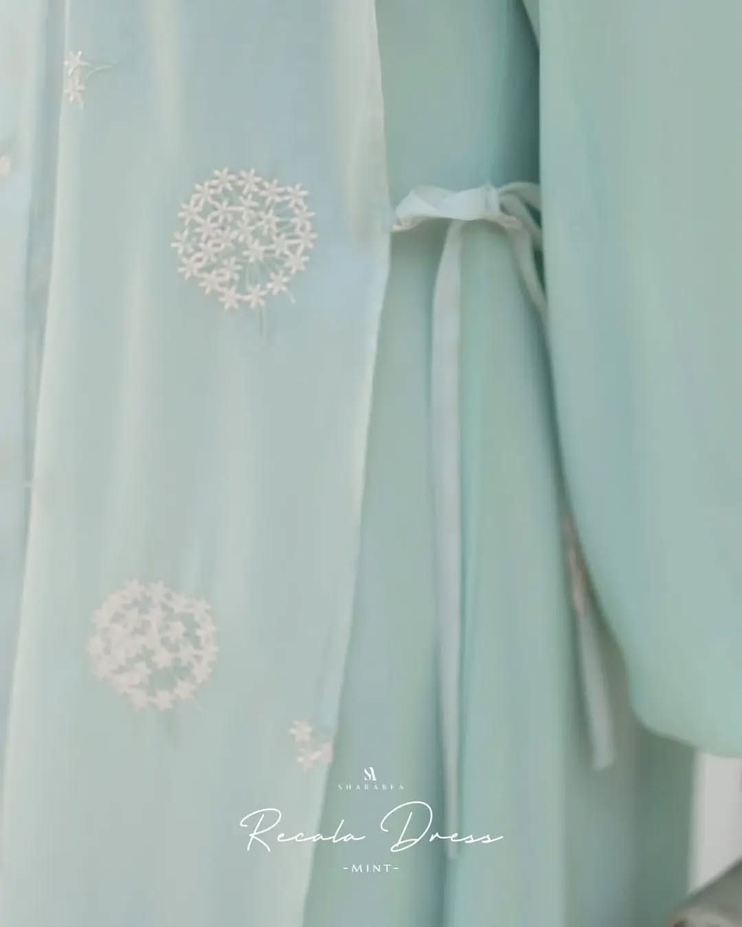 • Organza material layer with dandelion embroidery details